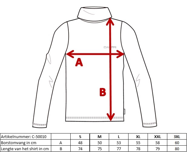 Deze Campri skipully voor heren is voorzien van een hoge col die je eenvoudig zelf omrolt. Het shirt met col is gemaakt van katoen met een vleugje elastan: hierdoor rekt het shirt iets mee en voelt het zacht en comfortabel aan. Ideaal voor op koude dagen en op wintersport! Het shirt is gemaakt van 57% katoen, 38% polyester & 5% elastan.
