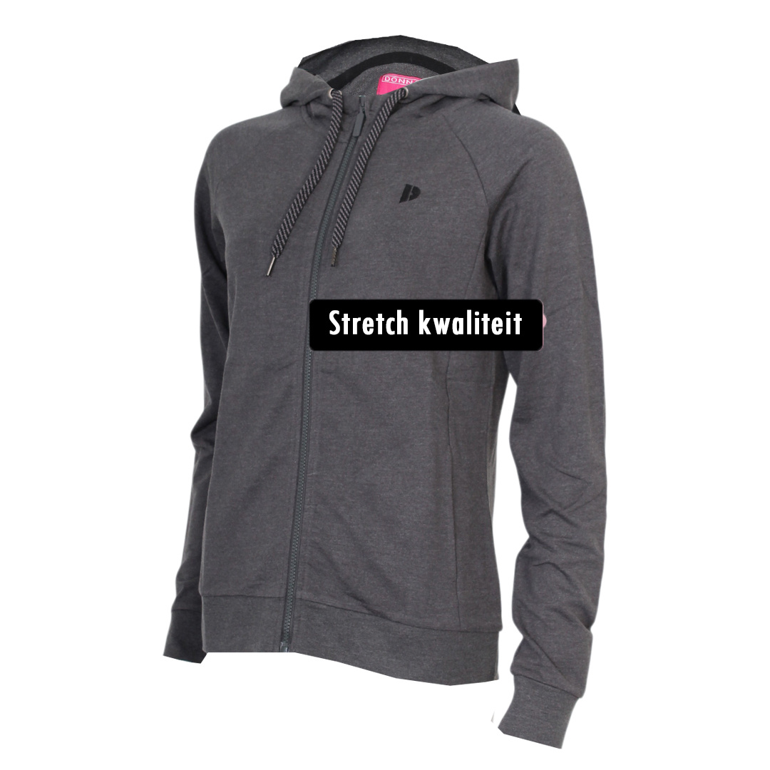 Dit sportieve damesvest is verkrijgbaar in drie stijlvolle kleuren: pink, zwart en donkergrijs gemêleerd. Perfect te combineren met één van onze dames joggingbroeken!