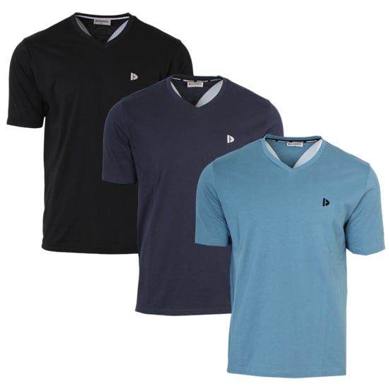 3-pack V-hals T-shirts – Donnay Berno (zwart, navy & light denim blue)