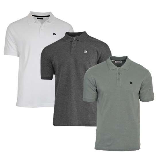 3-Pack heren polo's. De Donnay herenpolo Noah is gemaakt van 100% katoen pique; dit maakt de polo extra comfortabel! Noah staat bekend om zijn ruime pasvorm, dus neem gerust een maatje kleiner dan normaal. Pique katoen geeft de stof en de polo extra textuur en diepte. Hierdoor voelt de polo luchtig, maar ook stevig aan. De polo heeft een regular/ruime fit.