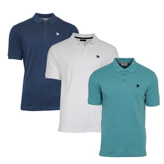 3-Pack heren polo's. De Donnay herenpolo Noah is gemaakt van 100% katoen pique; dit maakt de polo extra comfortabel! Noah staat bekend om zijn ruime pasvorm, dus neem gerust een maatje kleiner dan normaal. Pique katoen geeft de stof en de polo extra textuur en diepte. Hierdoor voelt de polo luchtig, maar ook stevig aan. De polo heeft een regular/ruime fit.