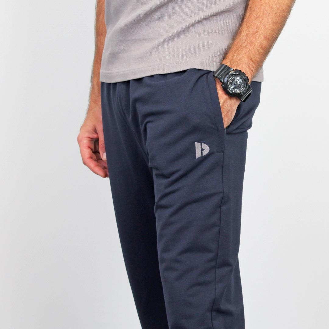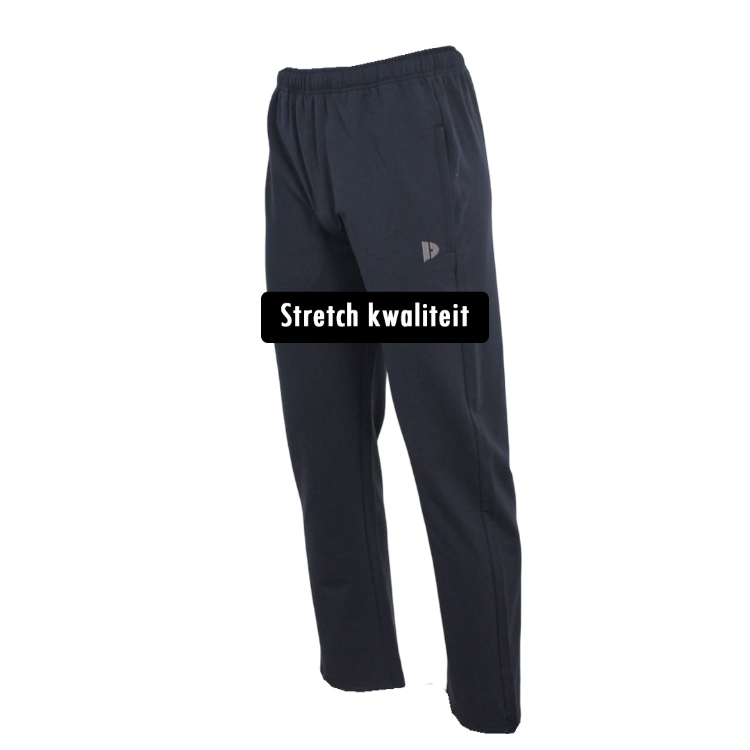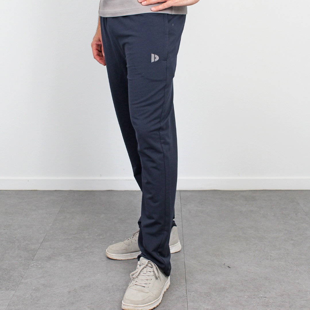 De navy Donnay Joggingbroek Jorge is gemaakt van stretch materiaal en is ideaal om in te sporten. Dankzij de slanke pasvorm met rechte pijp heeft de broek een nette uitstraling, terwijl de stretchstof zorgt voor optimale bewegingsvrijheid.