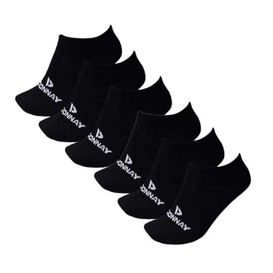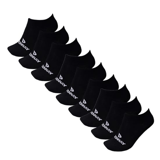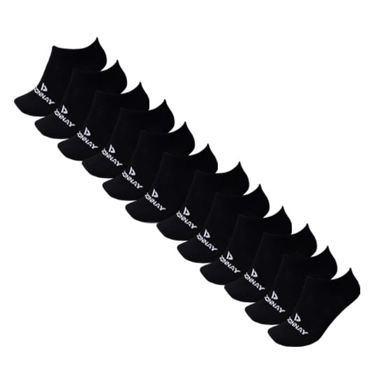 Pak met 12 paar zwarte enkelsokken. Gemaakt van een mooie stevige kwaliteit katoen en voorzien van een wit Donnay logo.